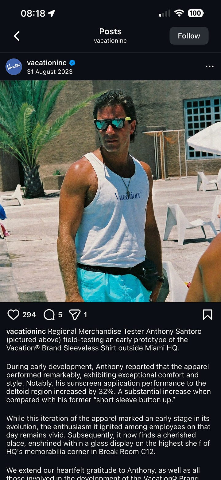 Vacation isn’t just a brand – it’s a fully fictional universe you can step into. And the clever part? That world existed before their first product even launched.